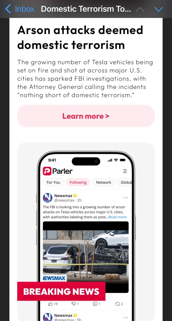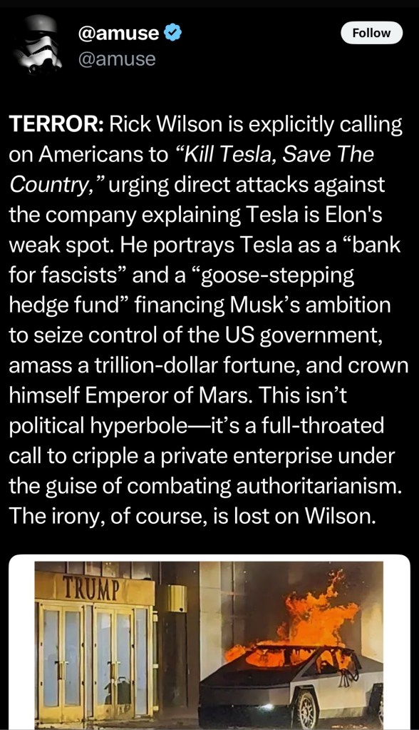 Whatever these vandalism incidents were supposed to do, it was the legal, peaceful protests, calls for boycotts of both Tesla and related advertisers, posting of our own narrative and information, and relentless pressure on elected officials, that ACTUALLY accomplished anything.