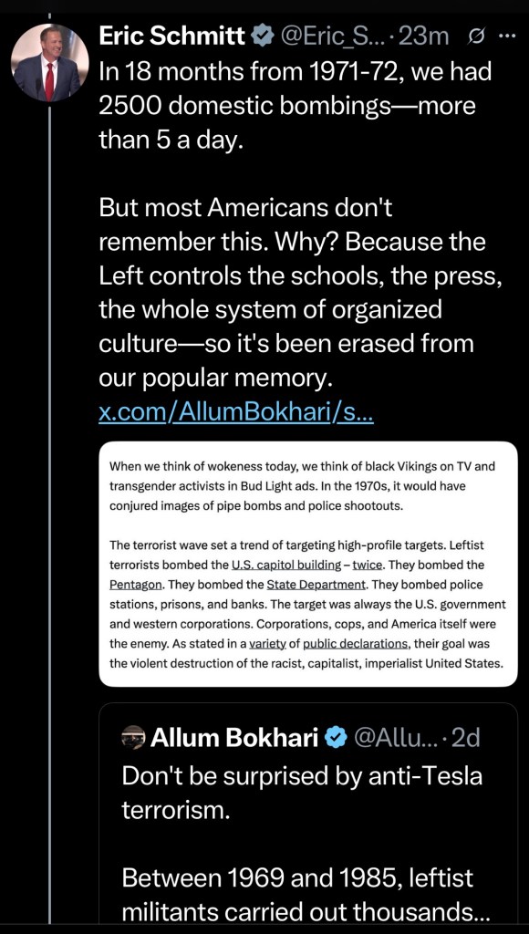 This is now the narrative: “The Left, with their long history of terrorist violence, is showing once again that they are coming to kill us all.”